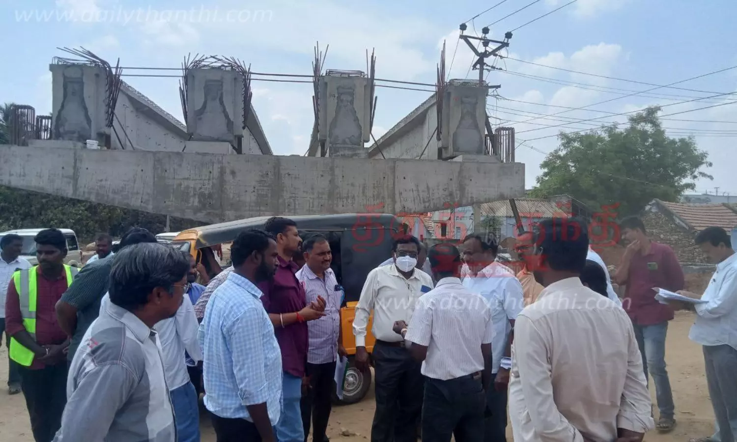 மேம்பால பணிகளை அதிகாரிகள் ஆய்வு