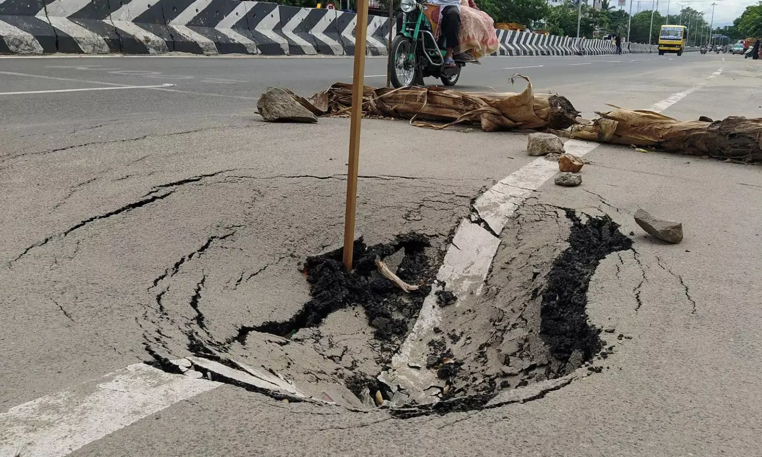 சாலையில் ஏற்பட்ட திடீர் பள்ளம்