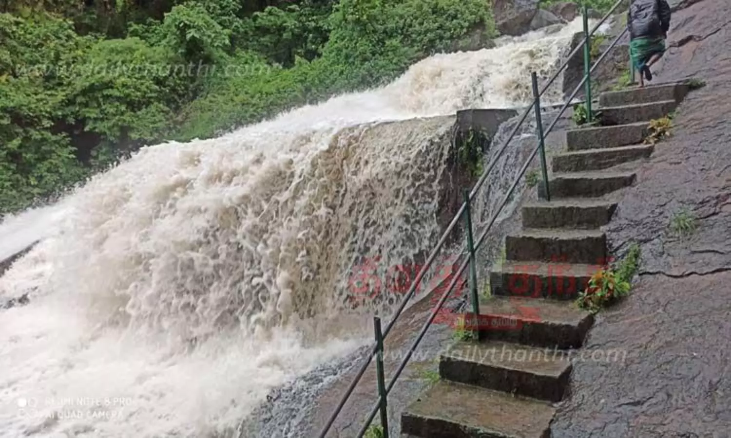 திடீர் வெள்ளப்பெருக்கினால் கோவை குற்றாலம் தற்காலிகமாக மூடப்பட்டது.;