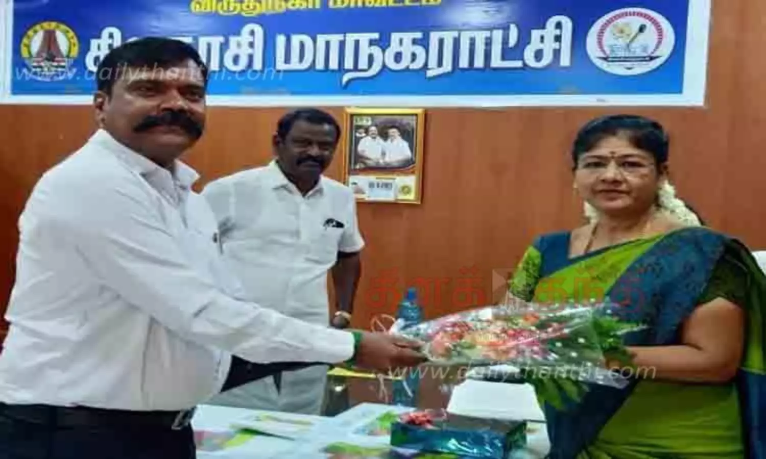 சிவகாசி மாநகராட்சி கமிஷனராக சங்கரன் நேற்று காலை பொறுப்பேற்றுக் கொண்டார். முன்னதாக அவர் மேயர் சங்கீதா இன்பத்திடம் வாழ்த்து பெற்றார்.
