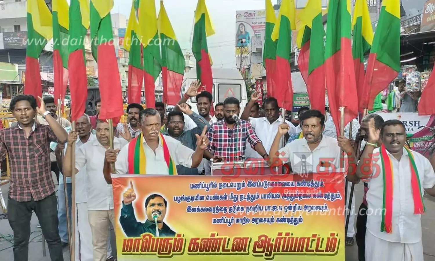 மணிப்பூர் கலவரத்தை தடுக்க தவறிய மத்திய பா.ஜ.க. அரசை கண்டித்து ஈரோடு வடக்கு மாவட்ட தமிழக வாழ்வுரிமை கட்சி சார்பில் பவானியில் ஆர்ப்பாட்டம் நடைபெற்றது.