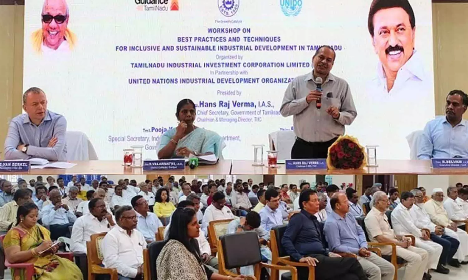 ராணிப்பேட்டை மாவட்டத்தில் தமிழ்நாடு தொழில் முதலீட்டு கழகம் ஐக்கிய நாடுகளின் தொழில்துறை மேம்பாட்டு நிறுவனத்துடன் இணைந்து தமிழகத்தில் உள்ளடங்கிய மற்றும் நிலையான தொழில் வளர்ச்சிக்கான சிறந்த நடைமுறைகள் மற்றும் நுட்பங்கள் குறித்த ஒரு நாள் பயிற்சி பட்டறை கலெக்டர் அலுவலக வளாகத்தில் நடைபெற்றது.