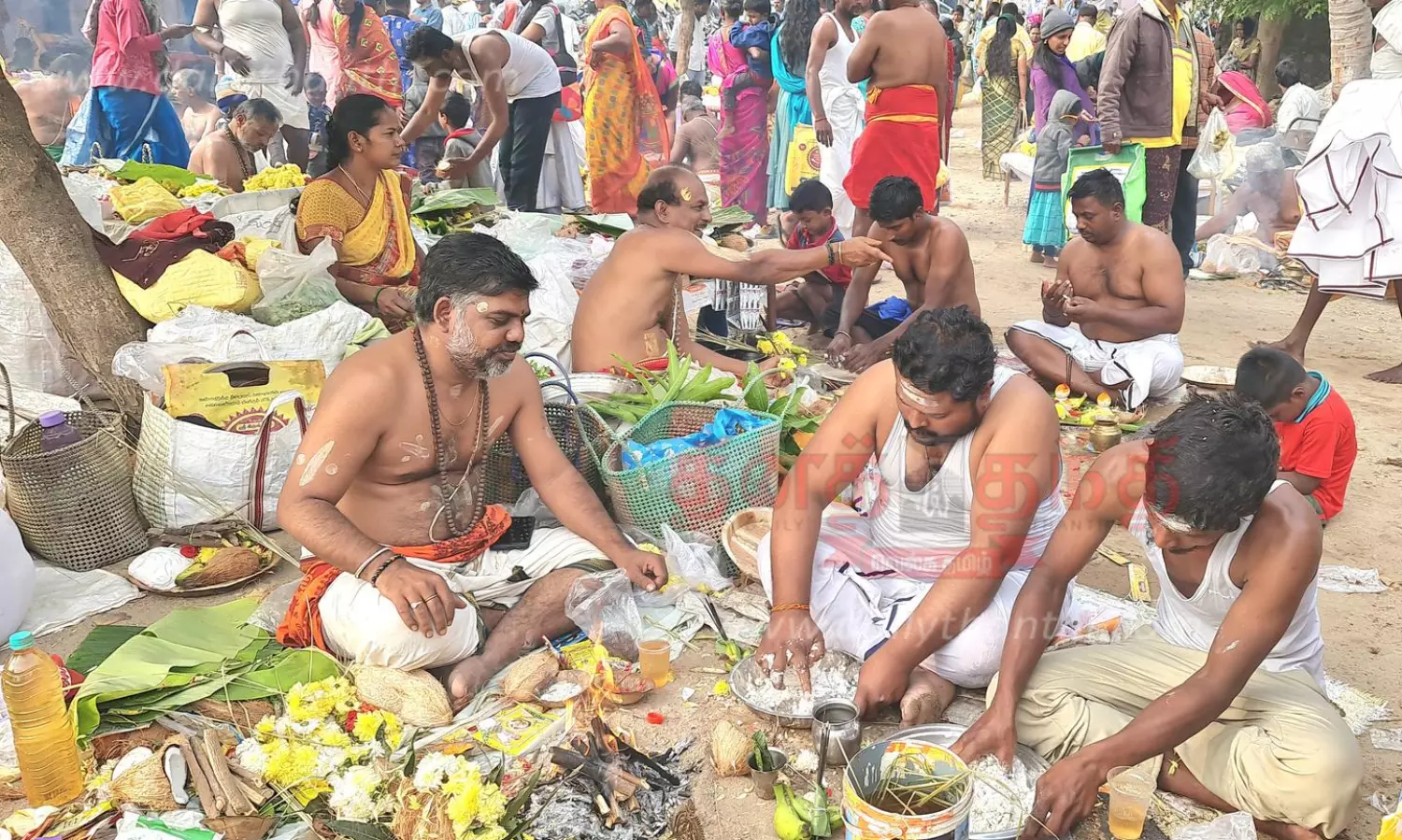 இதில் கிருஷ்ணகிரி மாவட்ட மக்கள் மட்டுமின்றி ஆந்திரா, கர்நாடகா உள்ளிட்ட மாநிலங்களில் இருந்து ஏராளமான பொதுமக்கள் வந்து வாழை இலையில் பச்சரிசி, காய்கறி, அகத்திக்கீரை, வெற்றிலை பாக்கு, வாழைப்பழம் வைத்து தர்ப்பணம் கொடுத்தனர்.