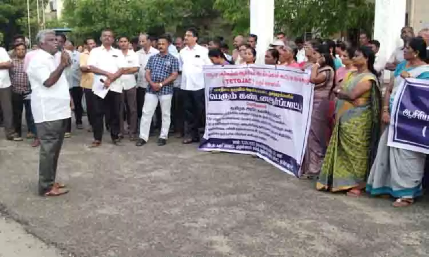 எண்ணும் எழுத்தும் திட்டத்தை கைவிடக்கோரி ஆசிரியர்கள் ஆர்ப்பாட்டம்