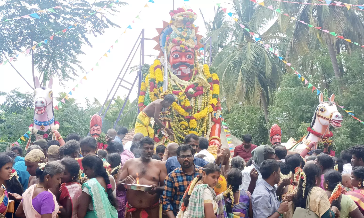 நல்லம்பள்ளி அருகே மிட்டாதின்னஅள்ளி ஊராட்சிக்குட்பட்ட எட்டியானூர் கிராமத்தில் உள்ள புள்ள முனியப்பன் கோவில் திருவிழா கடந்த சில நாட்களுக்கு முன்பு கொடியேற்றம், கங்கணம் கட்டுதலுடன் தொடங்கியது. விழாவின் முக்கிய நாளான நேற்று காலை சாமி பூக்கூடை அழைப்பு நிகழ்ச்சி, மூலவருக்கு அபிஷேகம், மகா தீபாராதனை நடந்தது. இதனை தொடர்ந்து மூலவர் முப்பூஜை அலங்காரத்தில் பக்தர்களுக்கு அருள்பாலித்தார்.