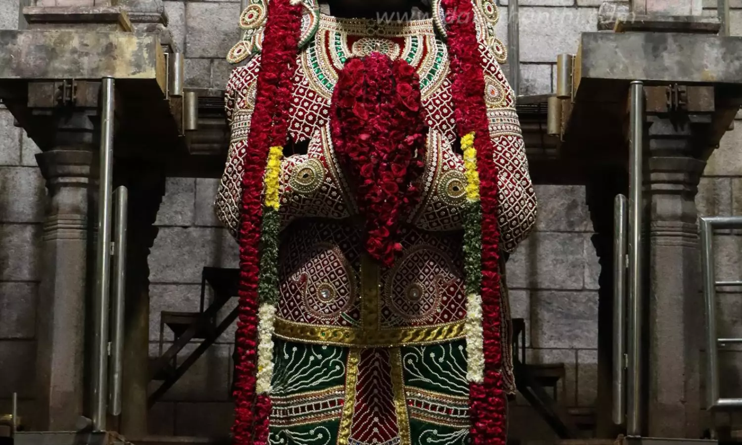 நாமக்கல்லில் உள்ள பிரசித்தி பெற்ற ஆஞ்சநேயர் கோவிலில் நேற்று சாமி முத்தங்கி அலங்காரத்தில் பக்தர்களுக்கு அருள்பாலித்தபோது எடுத்த படம்.
