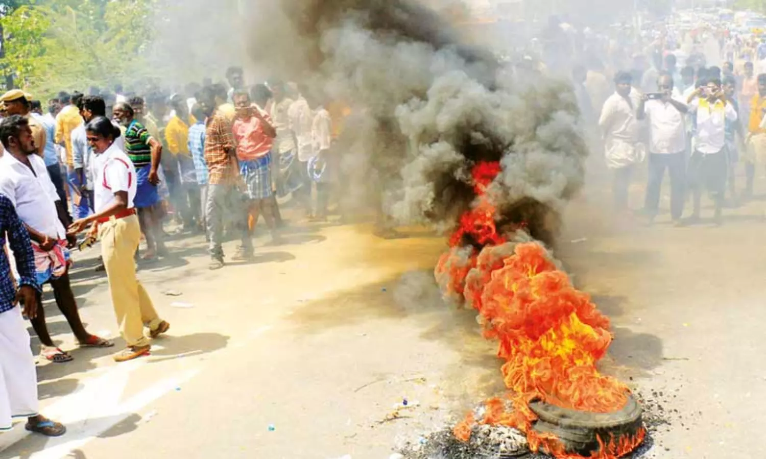 இதையடுத்து போராட்டத்தை கைவிடுவதாக பாதிக்கப்பட்ட பெண்ணின் குடும்பத்தினர் மற்றும் கிராம மக்கள் தெரிவித்தனர். ஆனால் போராட்டம் நடத்திக் கொண்டிருந்த சிலர், கலெக்டர் வராமல் போராட்டத்தை கைவிட மாட்டோம் என கூறி சாலையில் பழைய வாகனங்களின் டயர்களை தீ வைத்து எரித்தனர்.
