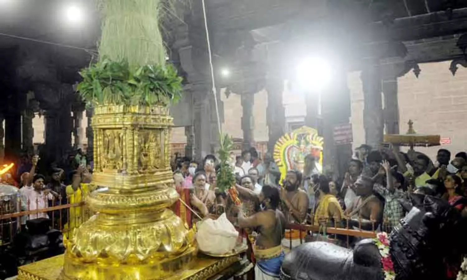 தொடர்ந்து உண்ணாமலை அம்மன் சன்னதி முன்பு உள்ள தங்க கொடி மரத்தின் முன்பு பராசக்தி அம்மனை பக்தர்கள் மத்தியில் எழுந்தருள செய்தனர்.