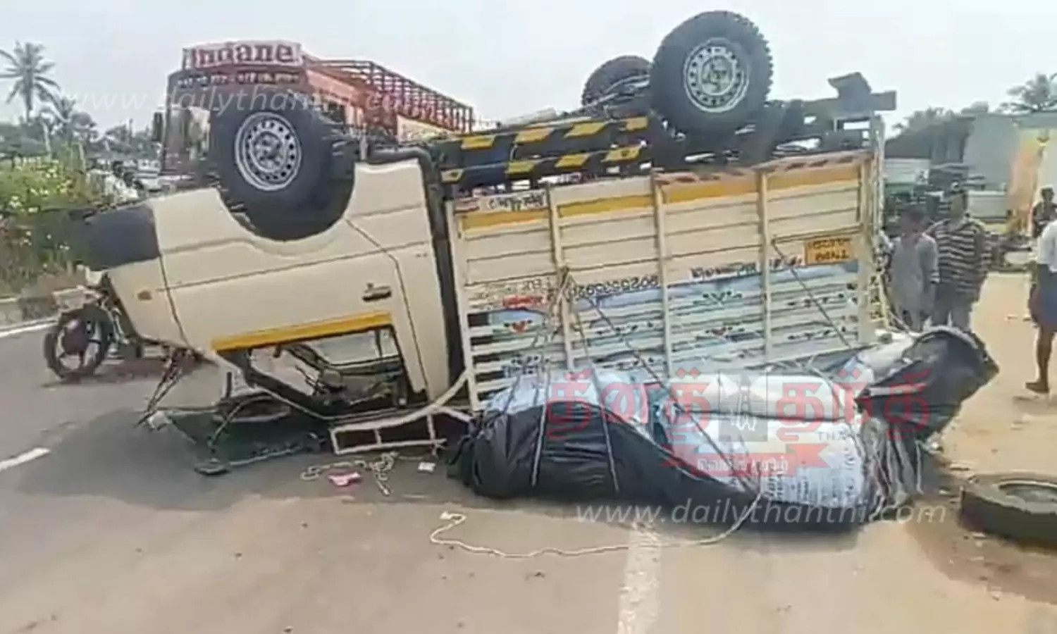 ஓமலூரில்சரக்கு வேன் தலைகுப்புற கவிழ்ந்தது