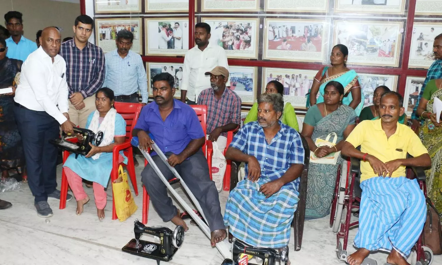 விழுப்புரம் மாவட்ட கலெக்டர் அலுவலகத்தில் நேற்று வாராந்திர மக்கள் குறைகேட்பு கூட்டம் நடைபெற்றது. கூட்டத்திற்கு மாவட்ட கலெக்டர் சி.பழனி தலைமை தாங்கி பொதுமக்கள், மாற்றுத்திறனாளிகளிடம் குறைகளை கேட்டறிந்து கோரிக்கை மனுக்களை பெற்றார். முதியோர் உதவித்தொகை, வீட்டுமனைப்பட்டா, ஆதரவற்றோர் உதவித்தொகை, பட்டா மாறுதல், தொழில் தொடங்க கடனுதவி, பிரதம மந்திரியின் வீடு கட்டும் திட்டம், முதல்-அமைச்சரின் பசுமை வீடு திட்டம் உள்ளிட்ட பல்வேறு கோரிக்கைகள் தொடர்பாக 423 பேர் மனுக்களை கொடுத்தனர். இம்மனுக்களை பெற்ற மாவட்ட கலெக்டர் சி.பழனி, இம்மனுக்கள் மீது விரைவில் நடவடிக்கை எடுக்கும்படி சம்பந்தப்பட்ட துறை அதிகாரிகளுக்கு உத்தரவிட்டார். தொடர்ந்து, மாற்றுத்திறனாளிகள் நலத்துறை சார்பில் 10 மாற்றுத்திறனாளிகளுக்கு ரூ.68 ஆயிரத்து 400 மதிப்பில் தையல் எந்திரங்களும், 10 மாற்றுத்திறனாளிகளுக்கு ரூ.1 லட்சத்து 35 ஆயிரத்து 400 மதிப்பில் திறன்பேசியும், 4 பேருக்கு ரூ.36 ஆயிரத்து 200 மதிப்பில் 3 சக்கர மிதிவண்டியும், 12 பேருக்கு புதிரை வண்ணார் சாதிச்சான்றிதழ் என மொத்தம் 36 பயனாளிகளுக்கு ரூ.2 லட்சத்து 40 ஆயிரம் மதிப்பில் அரசு நலத்திட்ட உதவிகளை கலெக்டர் வழங்கினார். இக்கூட்டத்தில் திண்டிவனம் சப்-கலெக்டர் கட்டா ரவிதேஜா, சமூக பாதுகாப்பு திட்ட தனித்துணை ஆட்சியர் விஸ்வநாதன், மாவட்ட மாற்றுத்திறனாளிகள் நல அலுவலர் தங்கவேலு உள்பட பலர் கலந்துகொண்டனர்.
