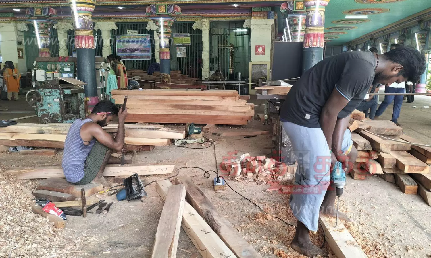 ரூ.87 லட்சம் மதிப்பில் புதிய மரத்தேர் கட்டுமான பணிகள் தீவிரம்