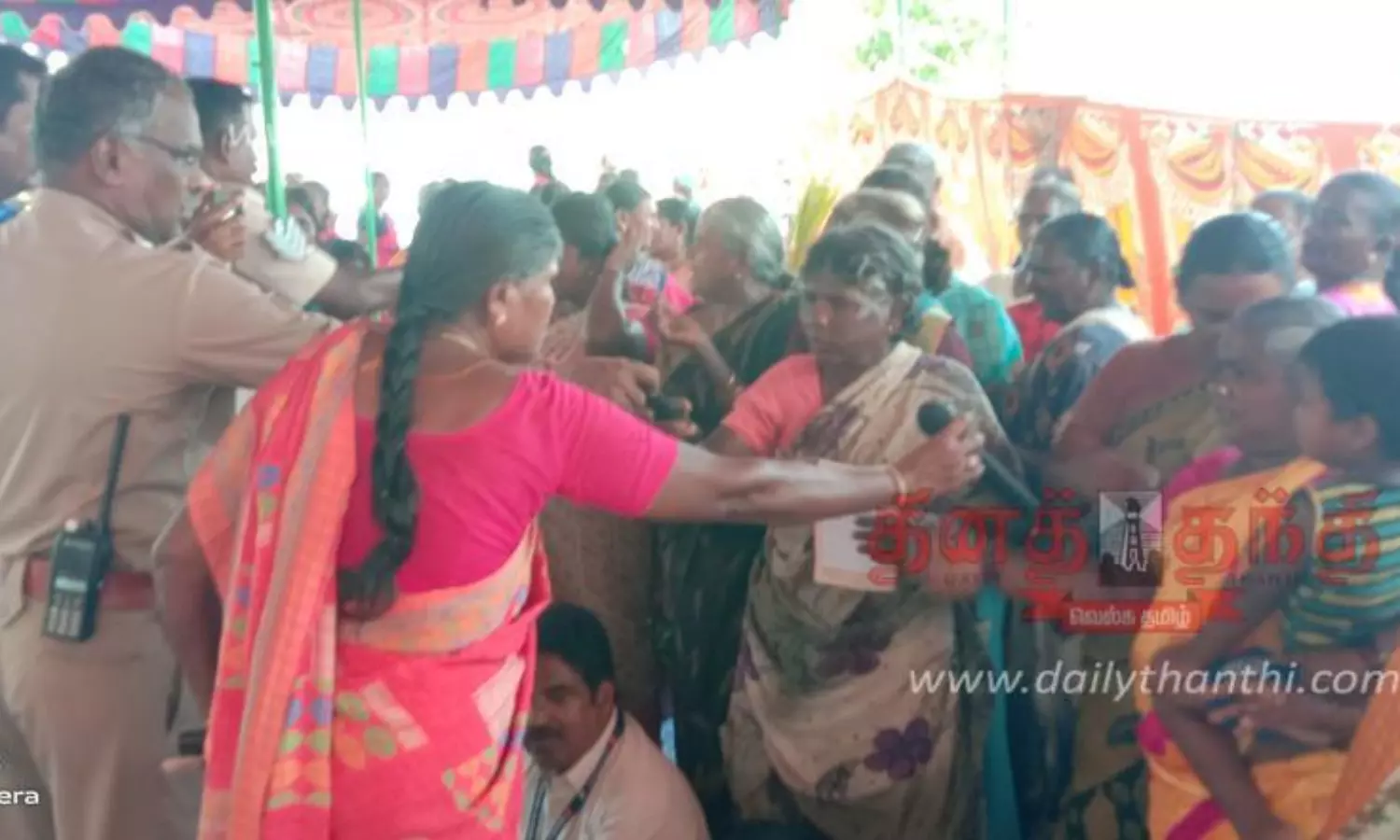 இதனால் கிராம சபை கூட்டத்துக்கு வந்திருந்த அலுவலர்கள் மற்றும் பொதுமக்கள் சிலருக்கும் இடையே கடுமையான விவாதம் ஏற்பட்டது. இதனால் அங்கு பரபரப்பு ஏற்பட்டது. உடனே அங்கு பாதுகாப்பு பணியில் இருந்த பங்களாப்புதூர் போலீஸ் சப்-இன்ஸ்பெக்டர் ரவி உள்ளிட்ட போலீசார் அங்கு சென்று பேச்சுவார்த்தை நடத்தி சமாதானம் செய்து வைத்தனர். பின்னர் 7-வது வார்டு உறுப்பினர் இ்ளங்கோவன் பொதுமக்கள் சார்பில், மக்களின் முறையான கேள்விகளுக்கு பதில் இல்லை, சரியான பதிவேடுகள் ஏதும் கொண்டு வரவில்லை, மறு தேதி குறிப்பிட்டு மாவட்ட கலெக்டர் முன்னிலையில் கொங்கர்பாளையம் ஊராட்சி கிராமசபை கூட்டம் மீண்டும் நடத்தப்பட வேண்டும் என்று கோரிக்கை வைத்தார். இதையடுத்து பொதுமக்கள் அங்கிருந்து கலைந்து சென்றார்.