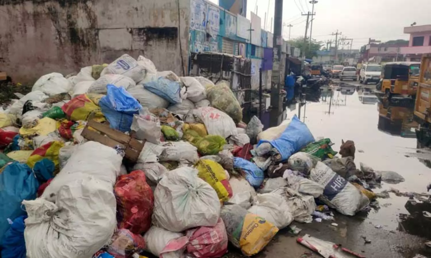 அதுமட்டுமின்றி நகரின் பல்வேறு இடங்களில் உள்ள குடியிருப்புகள், வர்த்தக நிறுவனங்களில் சேரும் குப்பைகளை மூட்டைகளாக கட்டிக்கொண்டு பஸ் நிலையத்திற்குள் கொண்டுவந்து போடுகின்றனர். நகரில் குப்பைகளை கொட்டுவதற்கு வேறு எங்குமே இடமில்லாதவாறு பஸ் நிலையத்திற்குள் கொண்டு வந்து குவியல், குவியலாக போடுகின்றனர். இங்கு நாள்தோறும் 2 லாரிகள் நிறைய குப்பை மூட்டைகளை அள்ளிச்செல்லும் அளவிற்கு குப்பைகள் மூட்டை, மூட்டைகளாக மலைபோல் குவிந்துக்கிடக்கிறது. இவ்வாறு கொண்டு வந்து போடப்படும் குப்பைகள், அங்குள்ள கழிவுநீர் வாய்க்கால் அருகிலேயே போட்டுவிட்டு செல்வதால் கழிவுநீர் வாய்க்கால் நிரம்பி தண்ணீர் செல்ல முடியாமல் தேங்கி நிற்கிறது. அதிலிருந்து கொசுக்கள் அதிகளவில் உற்பத்தியாகின்றன. அதோடு தேங்கிக்கிடக்கும் குப்பைகளால் பஸ் நிலைய பகுதி முழுவதும் கடும் துர்நாற்றம் வீசுவதால் பயணிகள் மூக்கை பிடித்துக்கொண்டு பஸ் நிலையத்தில் நிற்க வேண்டிய நிலை உள்ளது. ஒருபுறம் திறந்தவெளியிலேயே சிறுநீர் கழிக்கிறார்கள். மற்றொரு புறம் கழிவுநீர் வாய்க்கால் அருகில் குப்பைகள் மலைபோல் மூட்டை, மூட்டைகளாக குவிந்து கிடக்கிறது. இதனால் சுகாதார சீர்கேடாக காட்சியளிப்பதோடு துர்நாற்றத்தின் பிடியிலும் பஸ் நிலையம் சிக்கித்தவிப்பதால் இங்கு வரும் பயணிகள் மட்டுமின்றி கடைகள் நடத்தி வரும் வியாபாரிகளும் பெரும் சிரமத்திற்கு ஆளாகி வருகின்றனர்.