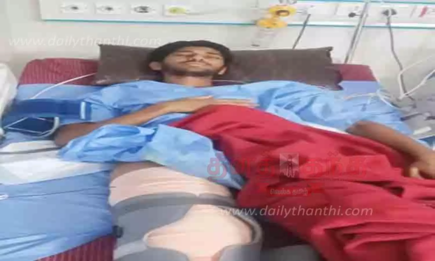 விருதுநகரில் விபத்தில் சிக்கி காயம் அடைந்த மாணவர் ஆம்புலன்சில் வந்து பிளஸ்-1 தேர்வு எழுதினார்;