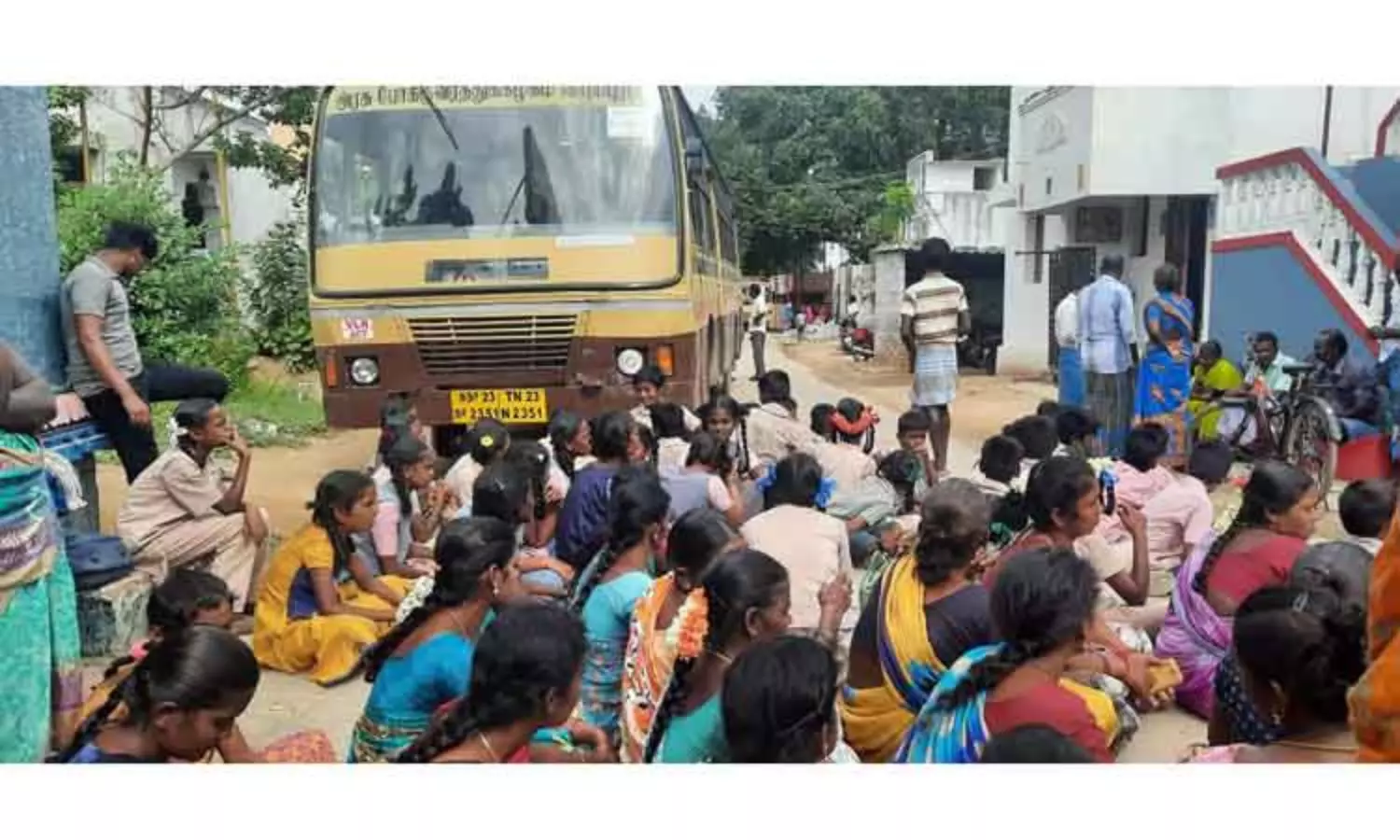 வாலாஜா அருகே அரசு பஸ்சை சிறைபிடித்து பொதுமக்கள் மற்றும் மாணவ-மாணவிகள் சாலை மறியலில் ஈடுபட்டனர்.