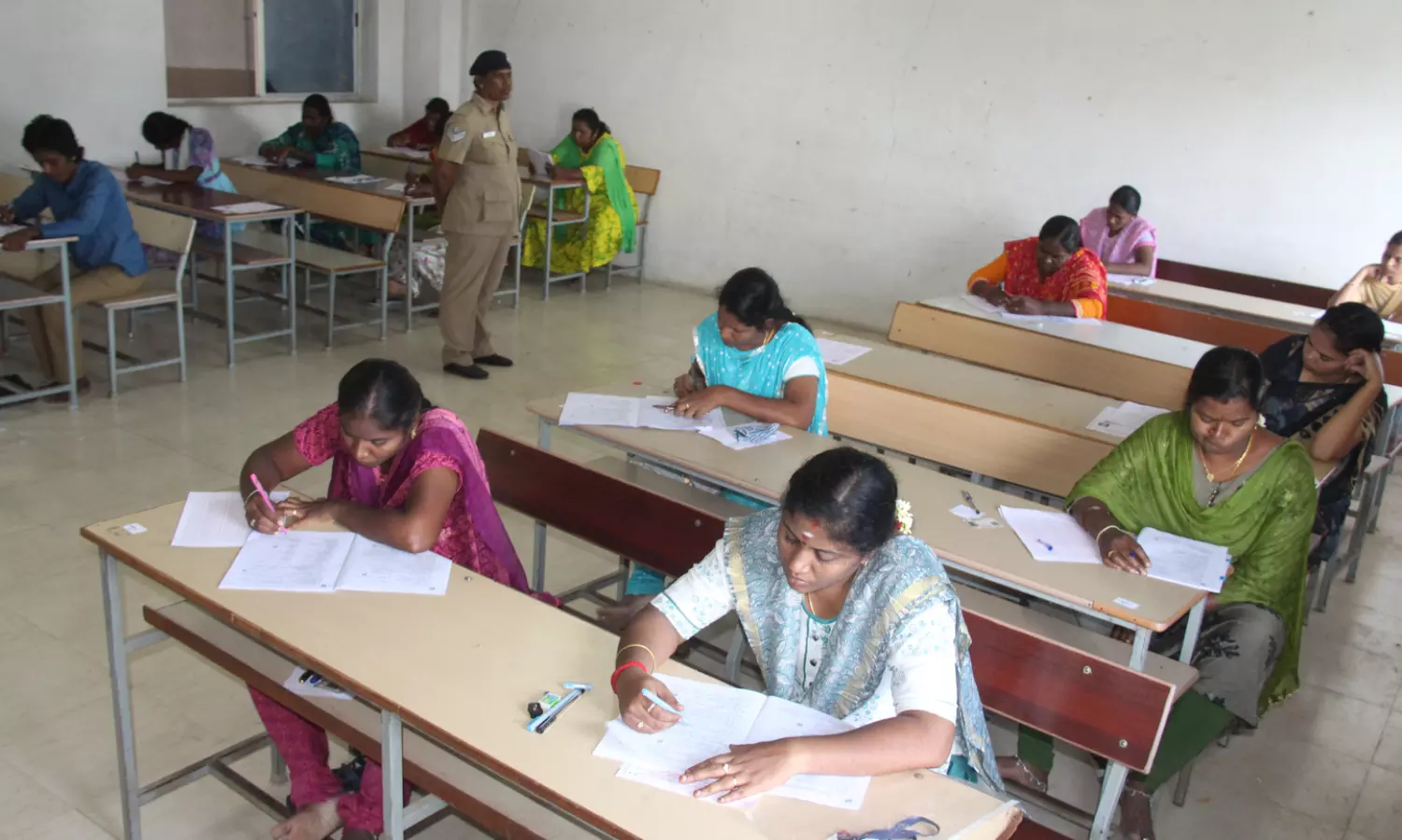 சேலம் மாவட்டத்தை பொறுத்தவரையில் சேலம் அம்மாபேட்டை ஏ.வி.எஸ்.பொறியியல் கல்லூரியில் அமைக்கப்பட்ட மையத்தில் கரூர், பெரம்பலூர் மாவட்டங்களில் பணியாற்றி வரும் காவல்துறை சார்ந்த போலீசார் 253 பேருக்கு அழைப்பு கடிதம் அனுப்பி வைக்கப்பட்டிருந்தது. இதில் 39 பேர் பெண்கள் ஆவர். காலை 8 மணிக்கே சிலர் தேர்வு மையத்திற்கு வரத்தொடங்கினர். அவர்களை மாவட்ட போலீஸ் சூப்பிரண்டு ஸ்ரீஅபினவ் தலைமையிலான போலீசார் பரிசோதனை செய்து உள்ளே அனுப்பி வைத்தனர்.