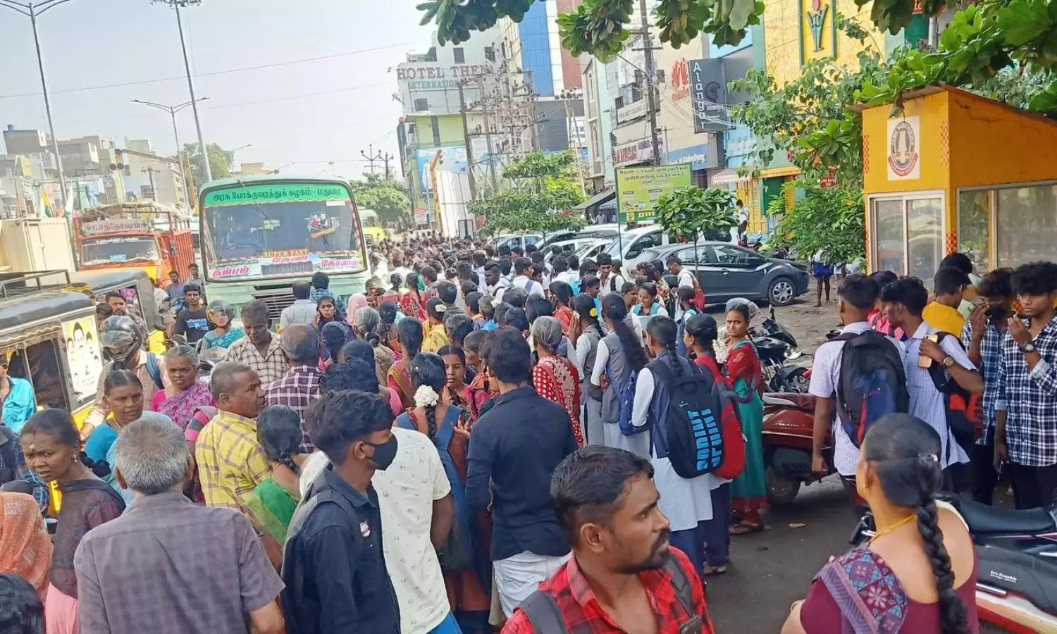 இந்த பணியின் காரணமாக தேனி பழைய பஸ் நிலையத்தின் நுழைவு வாயில், பஸ்கள் வெளியேறும் பகுதிகள் அனைத்தும் மூடப்பட்டன. பஸ்கள் அனைத்தும் மதுரை சாலை, கம்பம் சாலை வழியாக இயக்கப்பட்டன. பஸ் நிலையத்துக்கு வெளியே பஸ்கள் நின்று பயணிகளை ஏற்றி, இறக்கிச் சென்றன. காலை நேரத்தில் ஏராளமான மக்கள் சாலையில் காத்திருந்ததால் போக்குவரத்து நெரிசல் ஏற்பட்டது. போலீசார் பாதுகாப்பு மற்றும் போக்குவரத்து ஒழுங்குபடுத்தும் பணியில் ஈடுபட்டனர்.