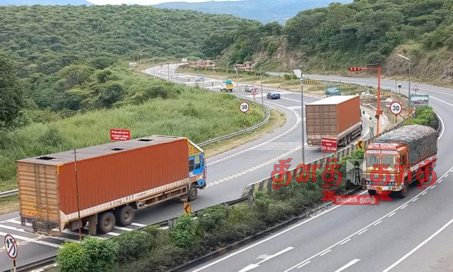 தமிழகத்தில் சேலம்- தர்மபுரி- கிருஷ்ணகிரி மாவட்டங்கள் வழியாக செல்லும் தேசிய நெடுஞ்சாலையில் தினமும் ஏராளமான வாகனங்கள் சென்று வருகின்றன. குறிப்பாக சேலம்- தர்மபுரி இடையே உள்ள நெடுஞ்சாலையில் தினமும் 75 ஆயிரத்திற்கும் மேற்பட்ட வாகனங்கள் சென்று வருகின்றன. லாரி, டிரக்குகள், கன்டெய்னர்கள் என கனரக வாகனங்கள் அதிகளவில் செல்லும் இந்த தேசிய நெடுஞ்சாலையில் தொப்பூர் கணவாய் மலைப்பாதை பகுதி சுமார் 6 கி.மீட்டரில் அமைந்துள்ளது.