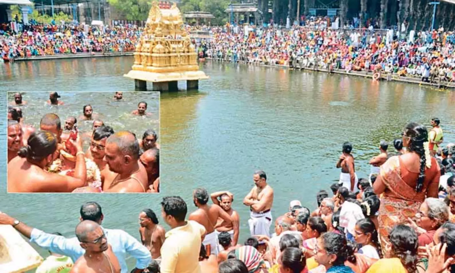 காஞ்சீபுரம் வரதராஜ பெருமாள் கோவில் தீர்த்த வாரி நடைபெற்றது.;