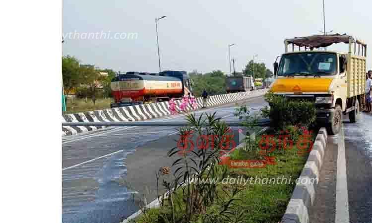 இதில் பால் வேன் நெடுஞ்சாலையின் மைய தடுப்புச்சுவரில் இருந்த மின் விளக்கு கம்பம் மீது மோதி நின்றது. இதில் மின் விளக்கு கம்பம் சரிந்து எதிரே உள்ள சாலையில் விழுந்தது. அப்போது அந்த வழியாக வாகனங்கள் ஏதும் வராததால் அசம்பாவித சம்பவம் தவிர்க்கப்பட்டது. விபத்துக்குள்ளான பால் வேனில் இருந்த கேன்களில் சில சரிந்து விழுந்தன. இதில் அந்த கேன்களில் இருந்த பால் சாலையில் ஆறாக ஓடியது.