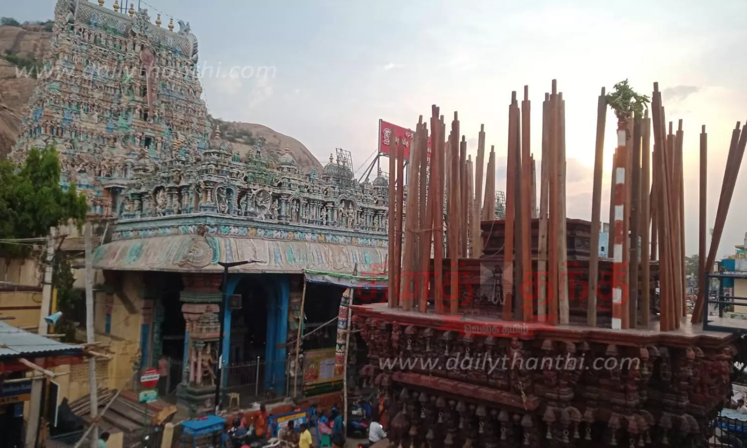 திருப்பரங்குன்றம் முருகன் கோவிலில் கடந்த 26-ந் தேதி கொடியேற்றத்துடன் பங்குனி பெருவிழா தொடங்கி நடைபெற்று வருகிறது. திருவிழாவின் சிகர நிகழ்ச்சியாக வருகின்ற 9-ந் தேதி மகா தேரோட்டம் நடக்கிறது. இதனையொட்டி முகூர்த்த கால் ஊன்றப்பட்டு கோவில் வாசல் முன்பு நிலை நிறுத்தப்பட்டுள்ள பெரிய தேர் தயார்படுத்தும் பணி தொடங்கியது. 3 கி.மீ. சுற்றளவு கொண்ட கிரிவலப்பாதையில் மகாதேர் வலம் வரும். லட்சக்கணக்கான பக்தர்கள் தேரினைவடம் பிடித்து இழுத்து தரிசனம் செய்கிறார்கள். அரிச்சந்திர மகராஜா வழங்கியதாக செவிவழி செய்தி கூறும் இந்த தேரினை வடம்பிடித்து இழுப்பதற்கு கோவில் உருவான காலம் தொட்டு இன்றுவரை பாரம்பரிய பழக்க வழக்கங்கள் கடைபிடிக்கப்படுகிறது.