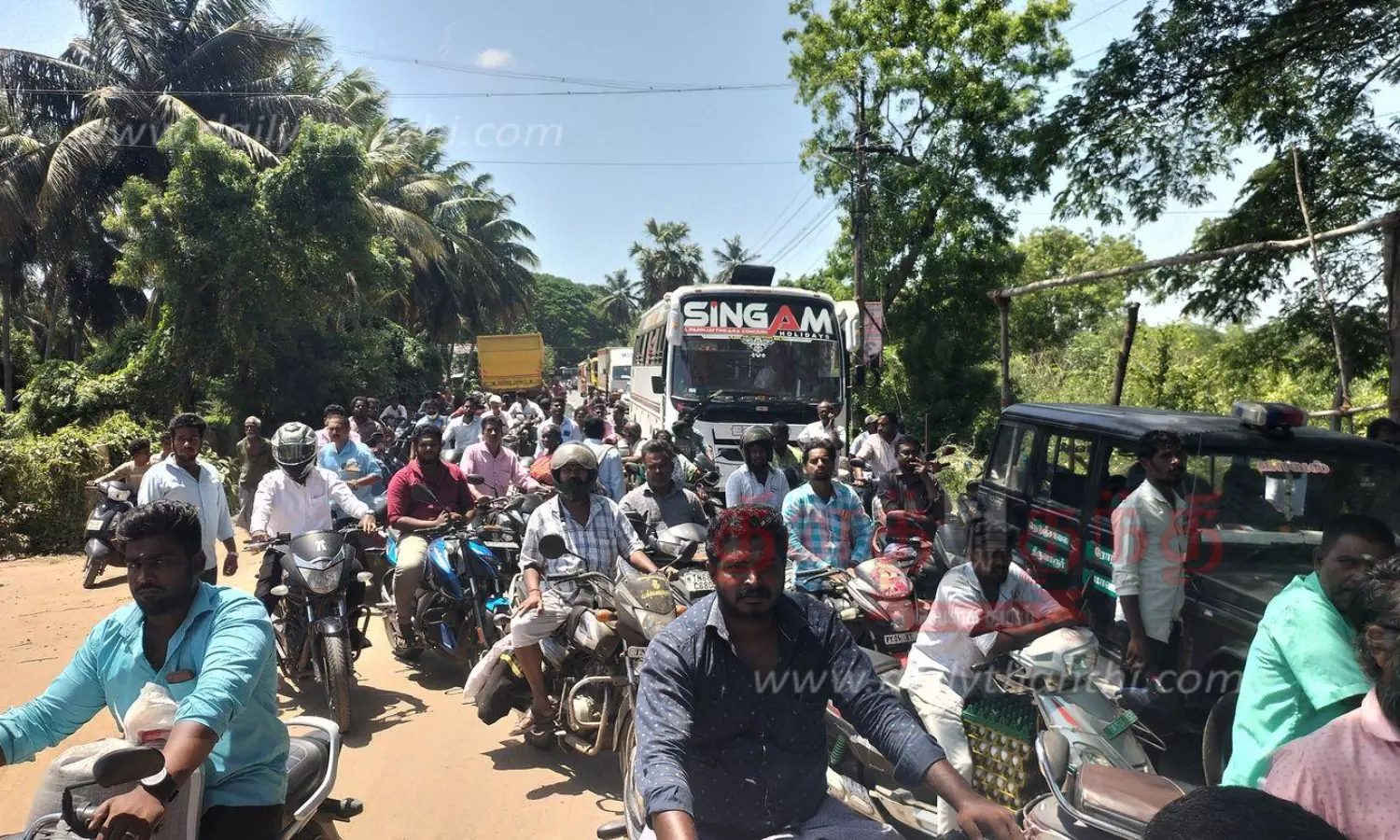 இந்த மண்ணில் அதிக பாரங்களை ஏற்றிகொண்டு லாரிகள் செல்லும் போது மீண்டும் உள்வாங்கிவிடுகிறது. நேற்று சரக்கு வாகனம் ஒன்று சிக்கியது. இதனால் வாகனங்கள் நீண்ட தூரத்திற்கு அணிவகுத்து நின்று போக்குவரத்து நெரிசல் ஏற்பட்டது. இந்த நெரிசலில் சிக்கி 2 ஆம்புலன்சுகள் காத்திருந்தன. உடனே பாதுகாப்பு பணியில் இருந்த போக்குவரத்து குற்ற புலனாய்வு போலீஸ் இன்ஸ்பெக்டர் ஈஸ்வர மூர்த்தி மற்றும் தாலுகா போலீஸ் சப்-இன்ஸ்பெக்டர் வைரமணி மற்றும் போலீசார் போக்குவரத்தை சரி செய்தனர்.