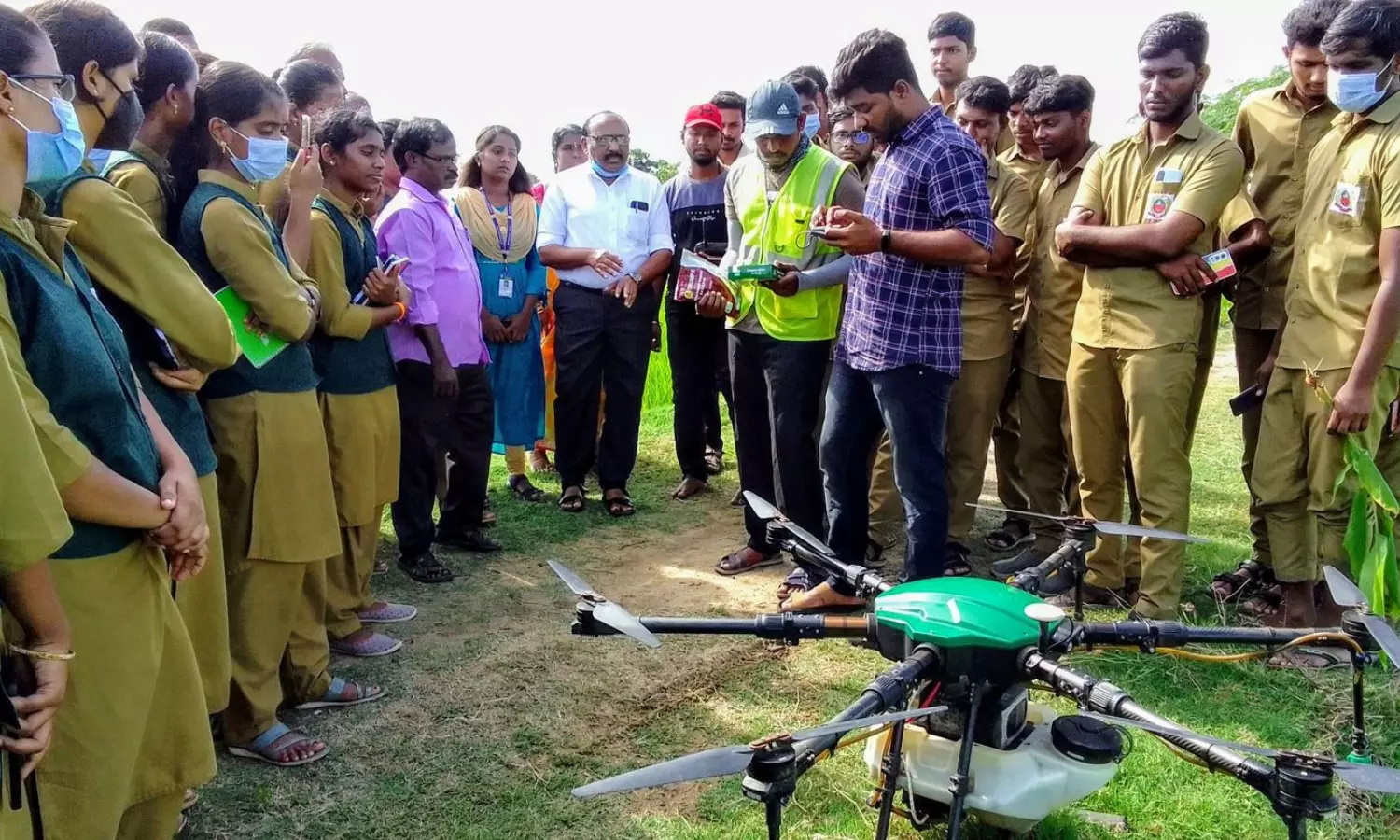 விவசாயிகளுக்கு, டிரோன் மூலம் மருந்து தெளிக்கும் பயிற்சி