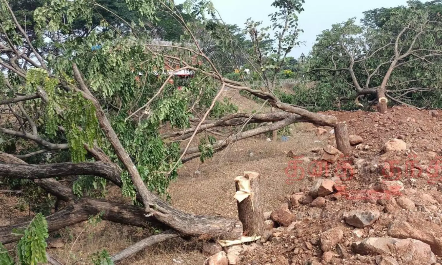 நல்லம்பள்ளி பாளையம் புதூர் அருகே பெருமாள் கோவில் எதிரே தர்மபுரி- சேலம் தேசிய நெடுஞ்சாலையோரம் ஏராளமான மரங்கள் உள்ளன. இந்த மரங்களை மர்ம நபர்கள் நேற்று முன்தினம் இரவு வெட்டி சாய்த்துள்ளனர். இதுகுறித்து சம்பந்தப்பட்ட சாலை பராமரிப்பு நிறுவனம் தொப்பூர் போலீசில் புகார் கொடுத்தனர். அதன்பேரில் தேசிய நெடுஞ்சாலையோரம் உள்ள மரங்களை வெட்டிய மர்மநபர்களை போலீசார் வலைவீசி தேடி வருகின்றனர்.