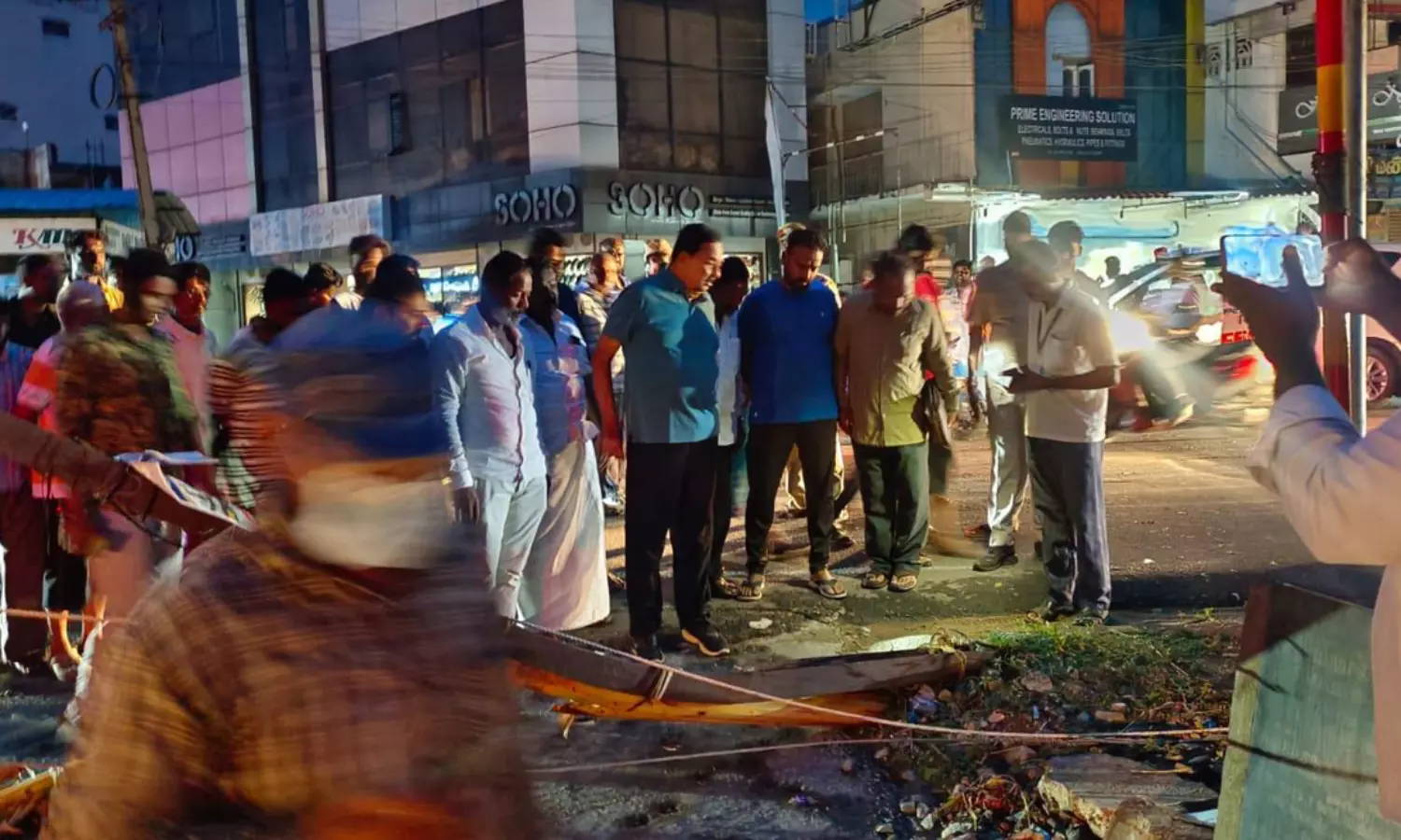 இது குறித்து தகவல் அறிந்து சம்பவ இடத்திற்கு நேரில் வந்த கைத்தறி மற்றும் துணி நூல் துறை அமைச்சர் காந்தி சேதமடைந்த பகுதிகளை பார்வையிட்டு, பணிகளை விரைந்து முடிக்க அதிகாரிகளுக்கு உத்தரவிட்டார். அப்போது நகர மன்ற தலைவர் சுஜாதா வினோத், மற்றும் நகர மன்ற உறுப்பினர்கள், நகராட்சி அலுவலர்கள், மின் வாரிய அலுவலகர்கள், உள்ளிட்டோர் உடன் இருந்தனர்.