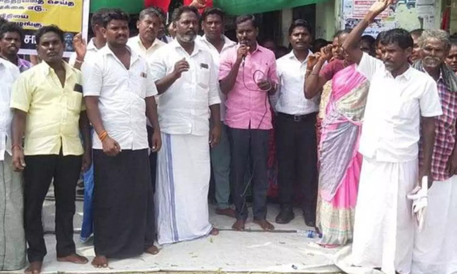 திருவெண்ணெய்நல்லூரில் பழங்குடி இருளர் பாதுகாப்பு சங்கத்தினர் ஆர்ப்பாட்டம்
