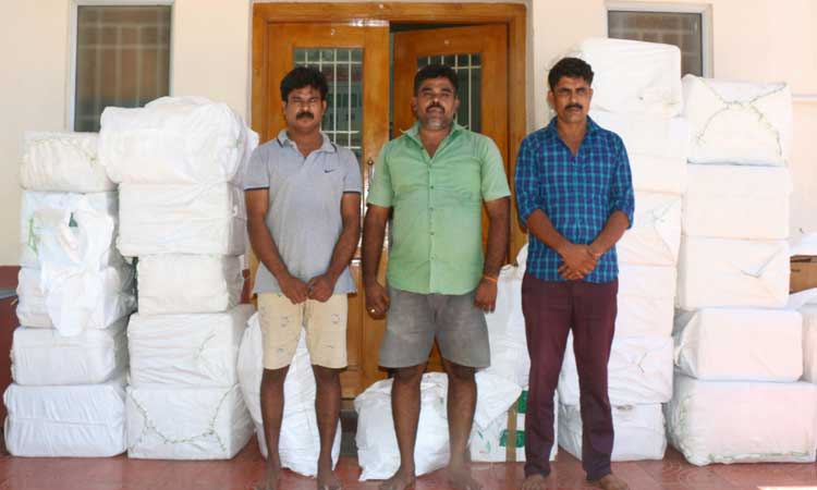 அதில் 100 மில்லி அளவு கொண்ட 2 ஆயிரத்து 500 சிரப் பாட்டில்கள், ஒரு லட்சம் மாத்திரைகள், 100 மில்லி அளவு கொண்ட 1000 மருந்து பாட்டில்கள், 1000 கர்ப்பம் குறித்து கண்டறியும் சாதனம், ஒரு செல்போன் ஆகியவை இருந்தன. இதன் இலங்கை மதிப்பு ரூ.32 லட்சம் என்று கூறப்படுகிறது.
