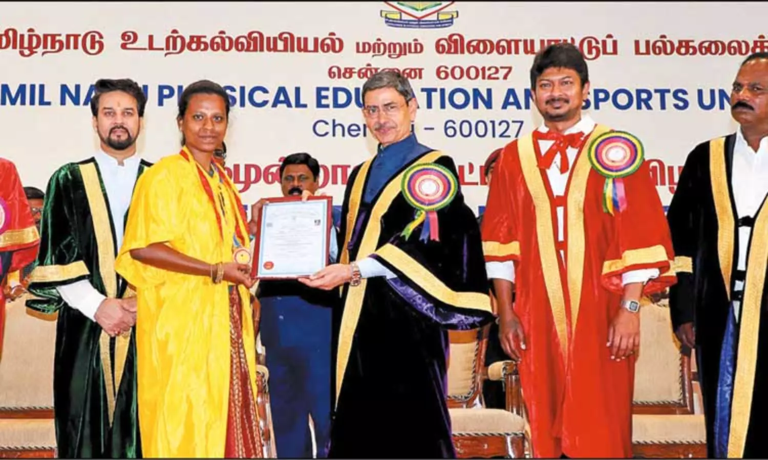 திருச்செந்தூர் டாக்டர் சிவந்தி ஆதித்தனார் உடற்கல்வியியல் கல்லூரியில் 2019-2022-ம் ஆண்டு வரையிலான கல்வி ஆண்டில் பி.பி.இ.எஸ். எனப்படும் இளங்கலை உடற்கல்வியியல் மற்றும் விளையாட்டு படிப்பில் பல்கலைக்கழக அளவில் முதலிடம் பிடித்த மாணவி கே.சுஷ்மிதா உள்ளிட்ட 107 ஆராய்ச்சி மாணவர்கள், பல்கலைக்கழக அளவில் முதலிடம் பிடித்த 58 மாணவ-மாணவிகள் கவர்னரிடம் இருந்து பட்டங்களைப் பெற்றனர்.