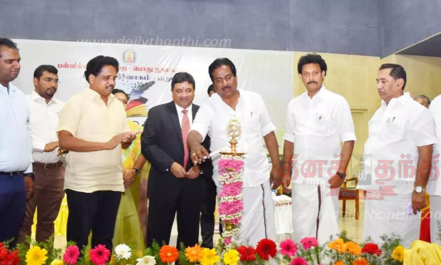 மதுரை மாவட்டம் உலக தமிழ் சங்க கூட்டரங்கில் பள்ளி கல்வித்துறை, நூலக துறை மற்றும் மாவட்ட நிர்வாகம் இணைந்து வைகை இலக்கிய திருவிழா 2023-ஐ நடத்தியது. வணிகவரி மற்றும் பதிவுத்துறை அமைச்சர் பி.மூர்த்தி, நிதி மற்றும் மனிதவள மேலாண்மை துறை அமைச்சர் பழனிவேல் தியாகராஜன், பள்ளி கல்வித்துறை அமைச்சர் அன்பில் மகேஷ் பொய்யாமொழி ஆகியோர் நேற்று குத்து விளக்கேற்றி விழாவை தொடங்கி வைத்தனர். விழாவில் அமைச்சர் அன்பில் மகேஷ் பொய்யாமொழி பேசுகையில்,