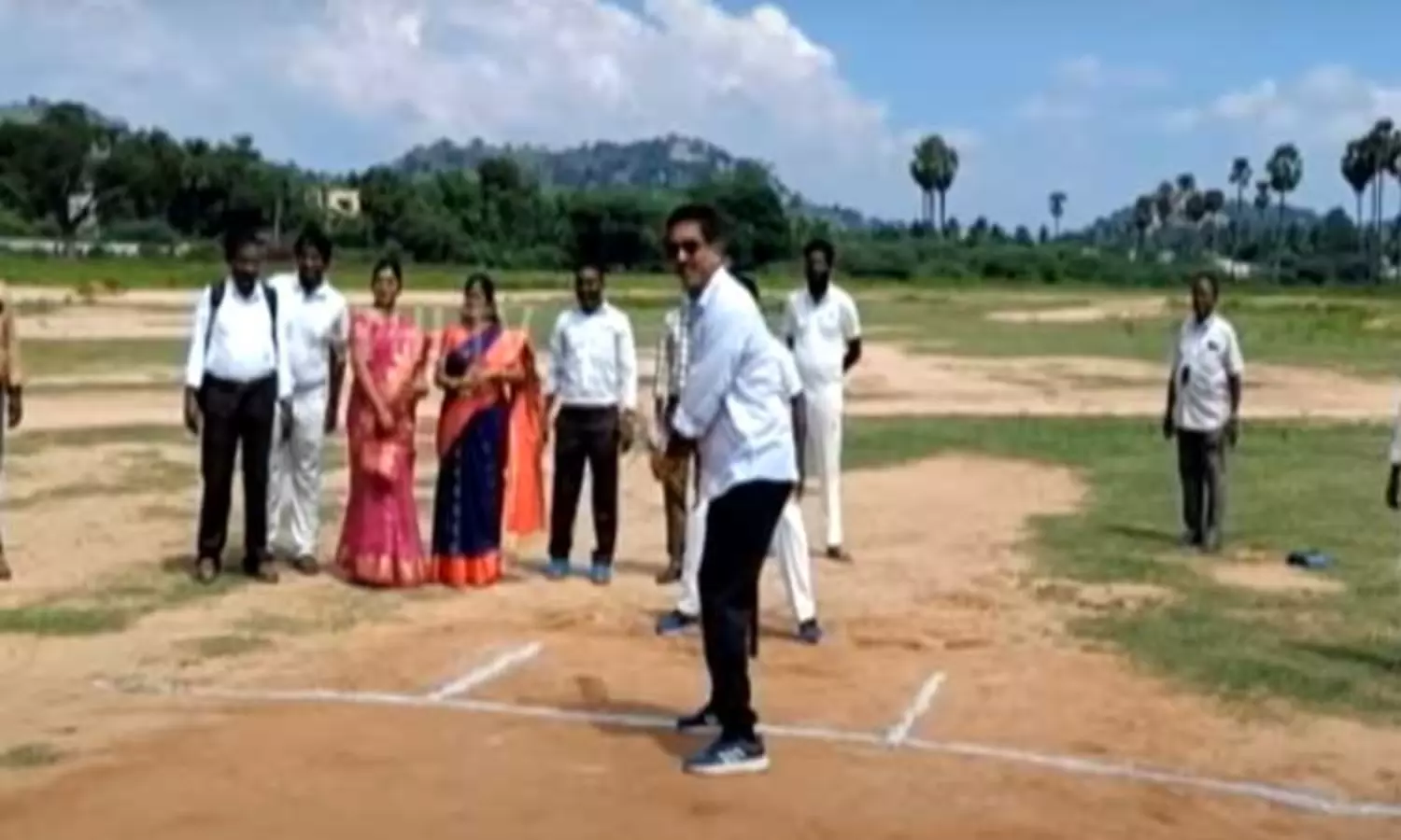 வேலூர் மாவட்ட ஆட்சியர் குமாரவேல் பாண்டியன், பேட்டை வாங்கிக்கொண்டு ஜாலியாக கிரிக்கெட் விளையாட ஆரம்பித்தார்.;