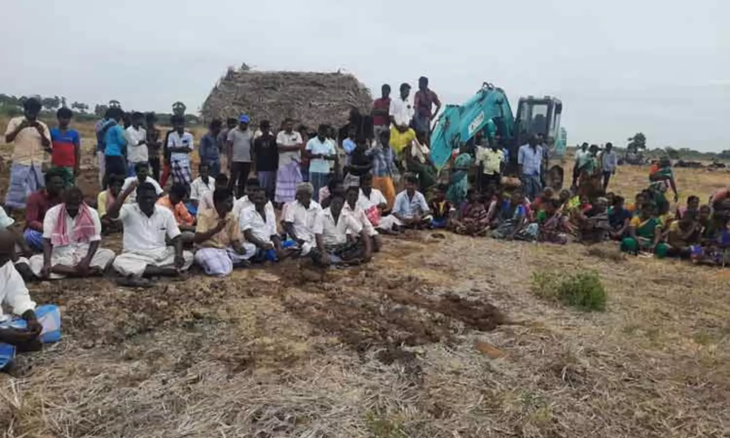 பொக்லின் எந்திரத்தை சிறைபிடித்து கிராம மக்கள் போராட்டம்