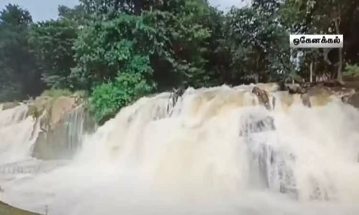 ஒகேனக்கலில் நீர்வரத்து 3 மடங்கு குறைவு - சுற்றுலா பயணிகளுக்கு தொடரும் தடை