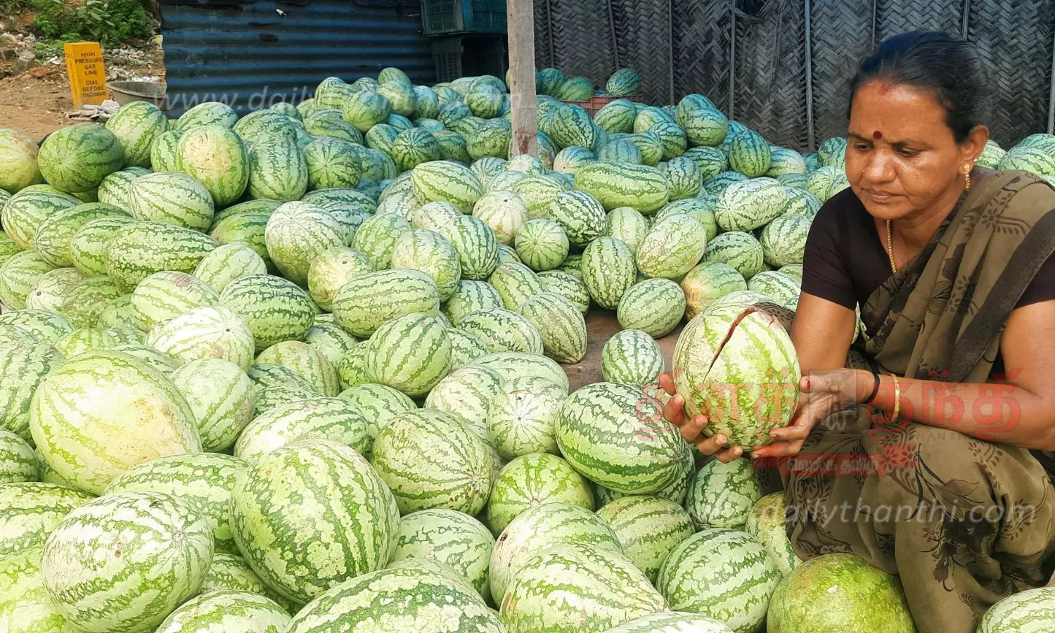 தமிழகம் முழுவதும் கடந்த மார்ச் மாதம் முதல் வாரத்தில் இருந்து கோடைகால சீசன் தொடங்கியது. அப்போேத கோடை வெயிலின் தாக்கம் மிக அதிகமாகவே இருந்து வந்தது. ராமநாதபுரம் மாவட்டத்திலும் வெப்பம் அதிகமாக காணப்பட்டது. வெயிலின் தாக்கத்தில் இருந்து தப்பிக்க பொதுமக்கள் குளிர்பானங்கள், தர்பூசணி உள்ளிட்டவற்றை பருகி வந்தனர். இதனால் ராமநாதபுரம் நகரில் பல்வேறு இடங்களில் விற்பனைக்காக குவித்து வைக்கப்பட்டிருந்த தண்ணீர் பழம் என்று சொல்லக்கூடிய தர்பூசணி பழங்கள் விற்பனை படுஜோராக நடைபெற்று வந்தது.