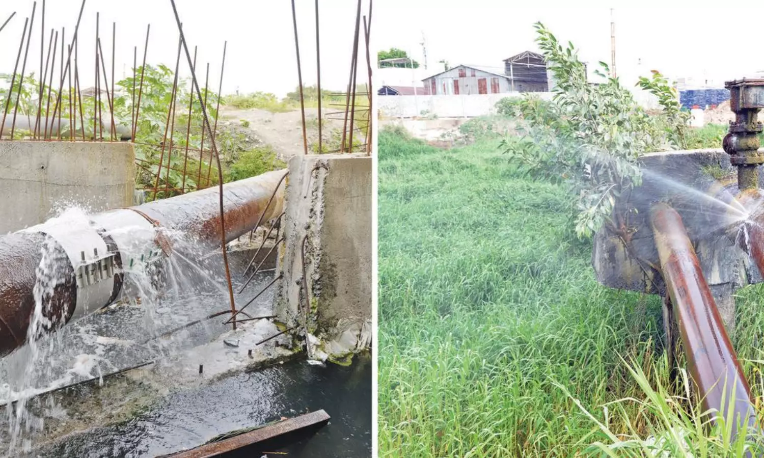 ராட்சத குழாய் ஒன்றில் கடந்த 3 மாதங்களுக்கு முன் உடைப்பு ஏற்பட்டு குடிநீர் ஸ்மார்ட் சிட்டி திட்டத்தின் கீழ் கட்டப்பட்டு வரும் பாதாள சாக்கடைக்குள் விழுந்து வீணாகி வந்தது. அதன்பின் உடைப்பு ஏற்பட்ட இடத்தில் சீரமைப்பு பணி மேற்கொள்ளப்பட்டது. ஆனால் மீண்டும் அதே இடத்தில் குடிநீர் பீறிட்டு வெளியேறி வீணாகி வருகிறது. அதுபோல் அதே பகுதியில் உள்ள மற்றொரு குழாய் பழுதடைந்து உடைப்பு ஏற்பட்டு குடிநீர் வீணாகி வருகிறது.