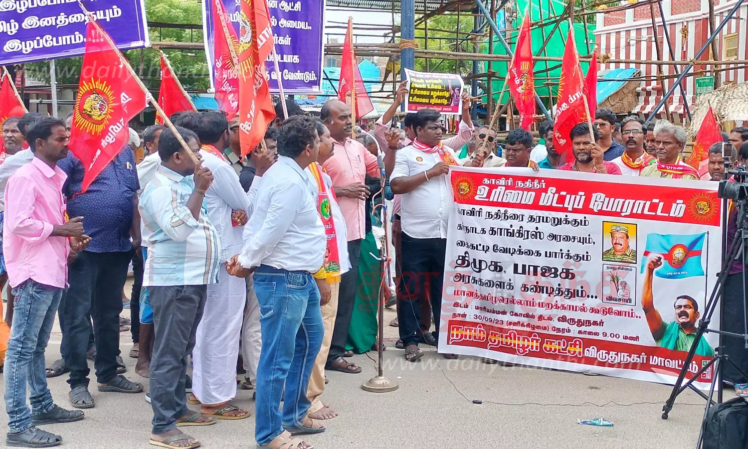 விருதுநகர் தேசபந்து திடலில் நாம் தமிழர் கட்சியினர் சட்டமன்ற தொகுதி செயலாளர் செல்வகுமார் தலைமையில் ஆர்ப்பாட்டம் நடத்தினர்.சுப்ரீம் கோர்ட்டு தீர்ப்பின் படி காவிரியில் தண்ணீர் திறந்து விட மறுக்கும் கர்நாடக அரசையும், அதற்கு துணை போகும் மத்திய அரசையும் கண்டித்து ஆர்ப்பாட்டம் நடத்தப்பட்டது. ஆர்ப்பாட்டத்தில் கர்நாடக அரசு சுப்ரீம் கோர்ட்டு உத்தரவின் படி காவிரியில் தண்ணீர் திறந்து விட வேண்டும் என வலியுறுத்தப்பட்டது. இதில் நாம் தமிழர் கட்சியினர் திரளாக கலந்து கொண்டனர்.