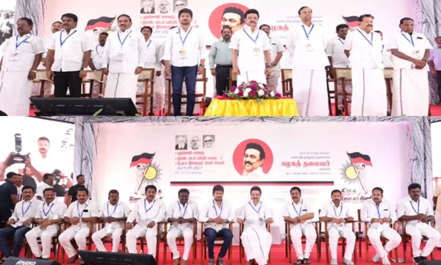 இந்த நிகழ்ச்சிக்கு தி.மு.க. தலைவரும், முதல்-அமைச்சருமான மு.க.ஸ்டாலின் தலைமை தாங்கினார். இதில் தி.மு.க. இளைஞர் அணி செயலாளரும், அமைச்சருமான உதயநிதி ஸ்டாலின் முன்னிலை வகித்தார். இதில் தி.மு.க. பொருளாளர் டி.ஆர்.பாலு எம்.பி., துணை பொதுச்செயலாளர்கள் அமைச்சர் க.பொன்முடி, ஆ.ராசா எம்.பி., அந்தியூர் செல்வராஜ், இளைஞர் அணி துணை செயலாளர் தூத்துக்குடி எஸ்.ஜோயல் உள்பட நிர்வாகிகள் பலர் கலந்து கொண்டனர். நிகழ்ச்சியில் முதல்-அமைச்சர் மு.க.ஸ்டாலின், முரசொலி பாசறை, திராவிட மாடல் பயிற்சி பாசறை-2, தி.மு.க. இளைஞர் அணி செயலியை தொடங்கி வைத்தார். முன்னதாக அவர் பேசியதாவது:-