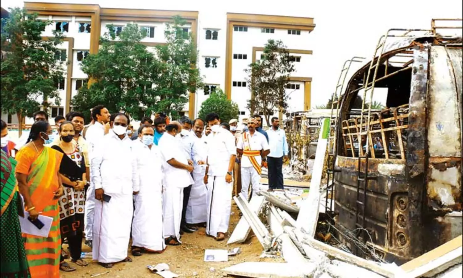 பள்ளிக்குள் நுழைந்து பள்ளிக்கு சொந்தமான 37 பஸ்கள், கார்கள், டிராக்டர்கள், பொக்லைன் என்று 67 வாகனங்களையும், பாதுகாப்பு பணிக்கு வந்த போலீசாரின் 2 பஸ்கள், 48 மோட்டார் சைக்கிள்களையும் தீ வைத்து கொளுத்தியுள்ளனர். இவர்கள் மாணவர்கள் என்ற பெயரில் வந்த விஷமிகள். அரசுக்கு அவப்பெயரை ஏற்படுத்தும் வகையில் இத்தகைய செயலில் ஈடுபட்டுள்ளனர்.