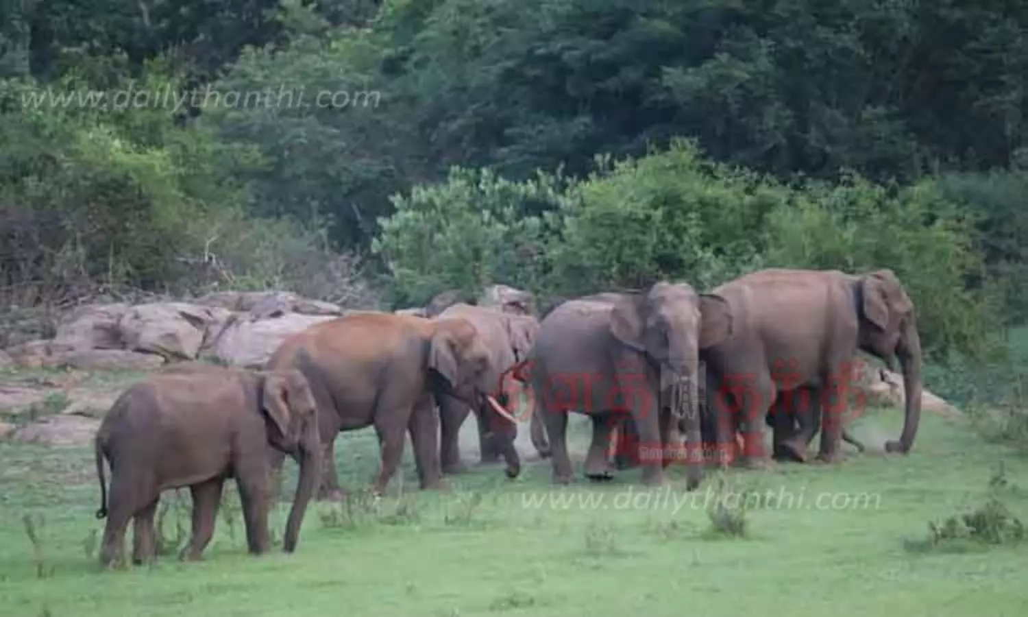 குட்டிகளுடன் உலா வரும் காட்டுயானைகள்