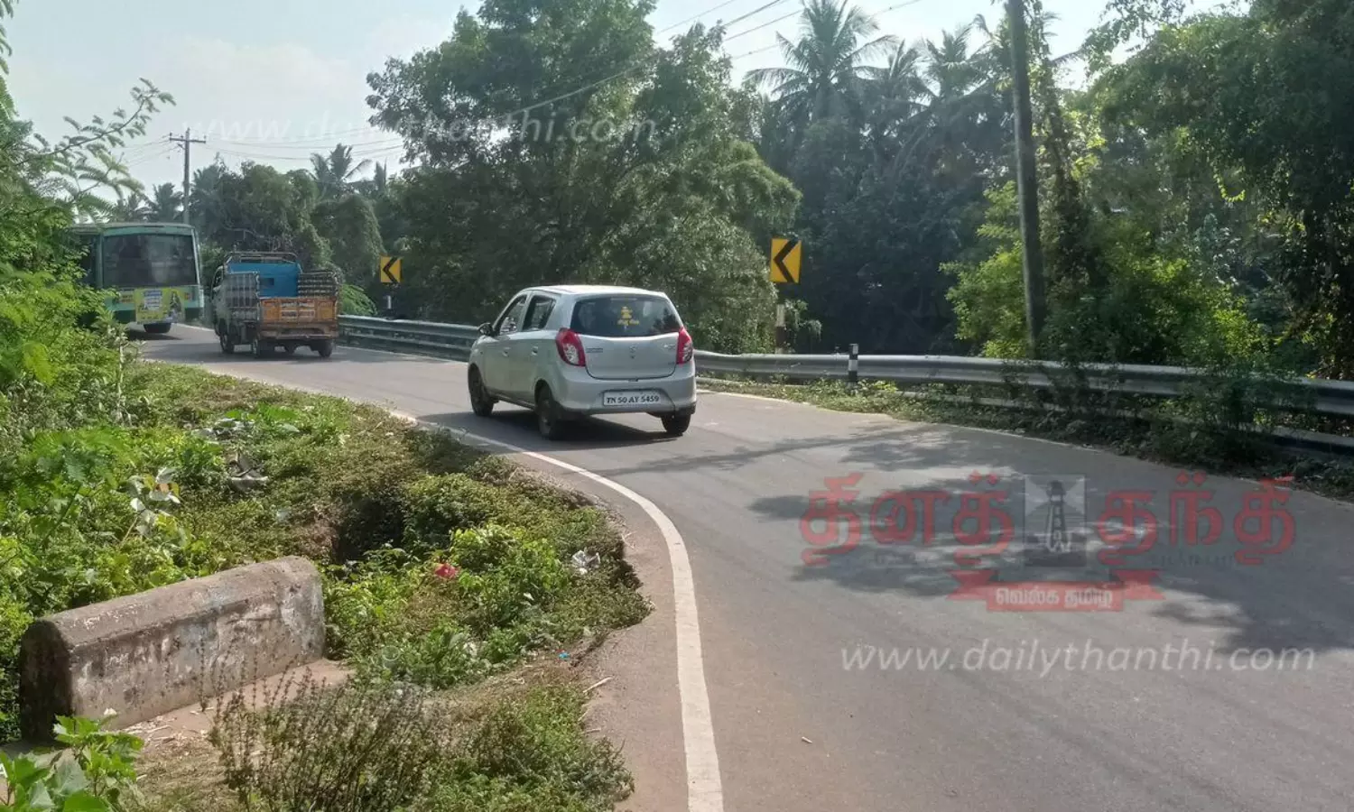 இதனால், பகல் நேரங்களை காட்டிலும் இரவு நேரங்களில் வாகனங்களை ஓட்டிச்சென்று வருவதற்கு வாகன ஓட்டிகள் மிகவும் சிரமம் அடைகின்றன. அதிலும் வெளியூர்களில் இருந்து வரும் வாகனங்கள் ஆபத்தான வளைவில் திரும்புவதற்கு நிலைதடுமாறுகின்றன. மேலும் கனரக வாகனங்களும் வளைவில் திரும்புவதற்கு சிரமம் அடைகின்றன. அதனால், ஆபத்தான வளைவில் அகலமான புதிய தரைப்பாலம் கட்டித்தர வேண்டும் என்றார்்.