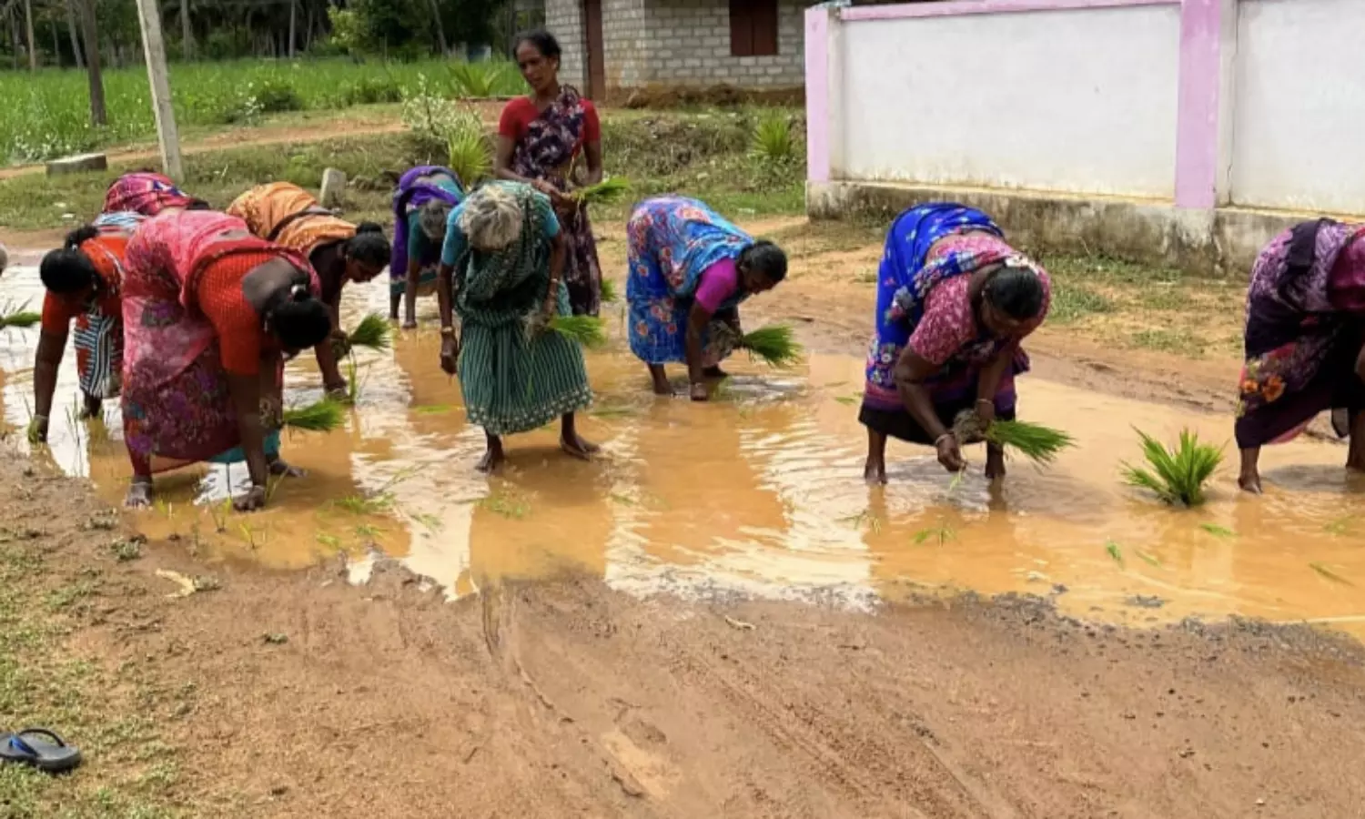 இதனால் ஆத்திரமடைந்த அப்பகுதி பெண்கள் மழை நீர் தேங்கி நின்ற குண்டும், குழியுமான சாலையில் நாற்றுநட்டு போராட்டம் நடத்தினர். இதையடுத்து அவர்கள் மாவட்ட கலெக்டரை அலுவலகத்தில் சந்தித்து மனு அளித்தனர்.