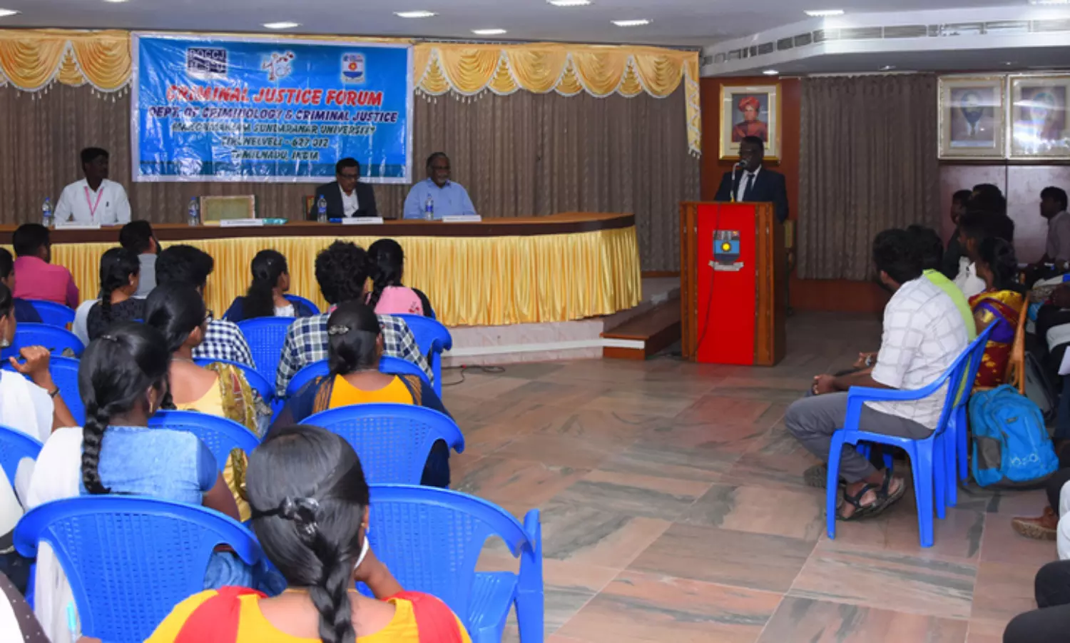 நெல்லை மனோன்மணியம் சுந்தரனார் பல்கலைக்கழகத்தில் குற்றவியல் மற்றும் குற்ற நீதித்துறையில் இருபெரும் விழா நடந்தது. குற்றநீதி மாணவர் மன்ற தொடக்க விழா மற்றும் பொருளாதார குற்றங்களின் புலனாய்வு பயிலரங்கம் பல்கலைக்கழக அரங்கத்தில் நடைபெற்றது. நிகழ்ச்சியில் குற்றவியல் துறைத்தலைவர் மாதவ சோமசுந்தரம் வரவேற்று பேசினார். பல்கலைக்கழக துணைவேந்தர் சந்திரசேகர் மன்றத்தினை தொடங்கி வைத்தார். மன்ற உறுப்பினர்களை உறுதிமொழி ஏற்கச்செய்து பேசினார். அப்போது அவர் பேசும்போது, மாணவர்களின் படைப்பாற்றல், புதுமைகள் மற்றும் புதிய எண்ணங்களை மாணவர் மன்றங்கள் மூலமே செயல்படுத்த முடியும். அரசின் புதிய செயல் திட்டங்கள் அனைத்து மாணவர்களையும் சென்றடைவதற்கும் இதுபோன்ற மாணவ மன்ற உறுப்பினர்கள் பல்கலைக்கழகத்திற்கும் மற்ற கல்லூரிகளுக்கும் சிறந்த முன்னுதாரணமாக சிறப்பாக செயல்பட வேண்டும், என்றார்.