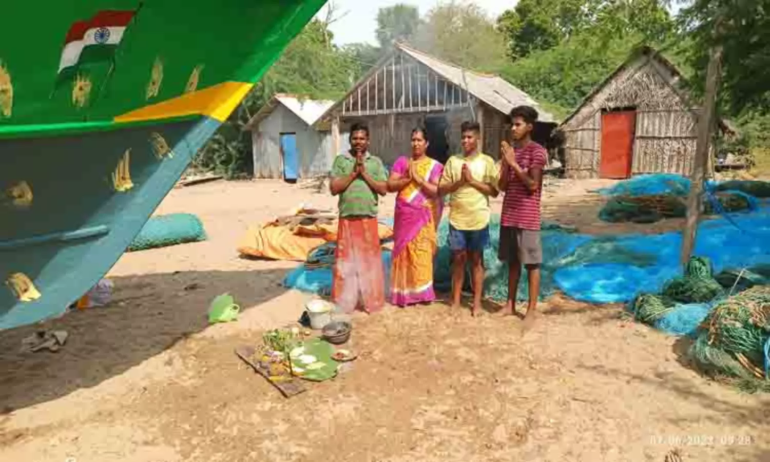 புதுப்பிக்கப்பட்ட படகுகள் முன்பு பொங்கல் வைத்து மீனவர்கள் வழிபாடு