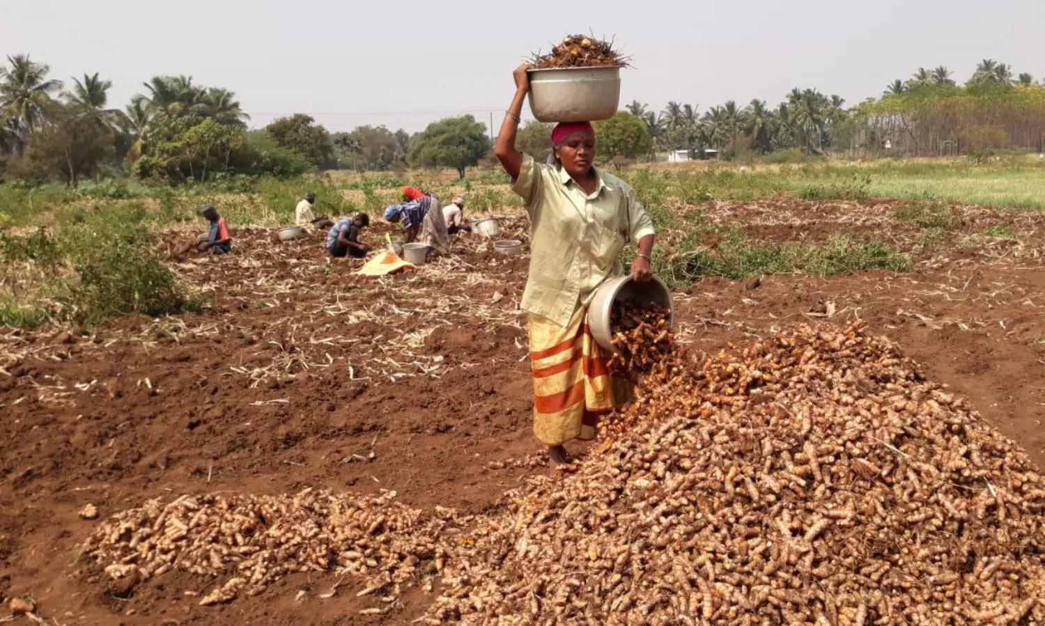 பல்லடம் தாலுகா கரைப்புதூர் ஊராட்சி காளிநாதம்பாளையத்தை சேர்ந்த விவசாயி குமார் .இவர் வெங்காயம்.தக்காளி.மிளகாய்போன்ற பல்வேறு வகையான காய்கறி பயிர்களை சாகுபடி செய்துவருகிறார் .ஒரு ஏக்கரில் மஞ்சள் பயிரிட்டு தற்பொழுது அறுவடை செய்யும் பணி நடந்து வருகிறது.