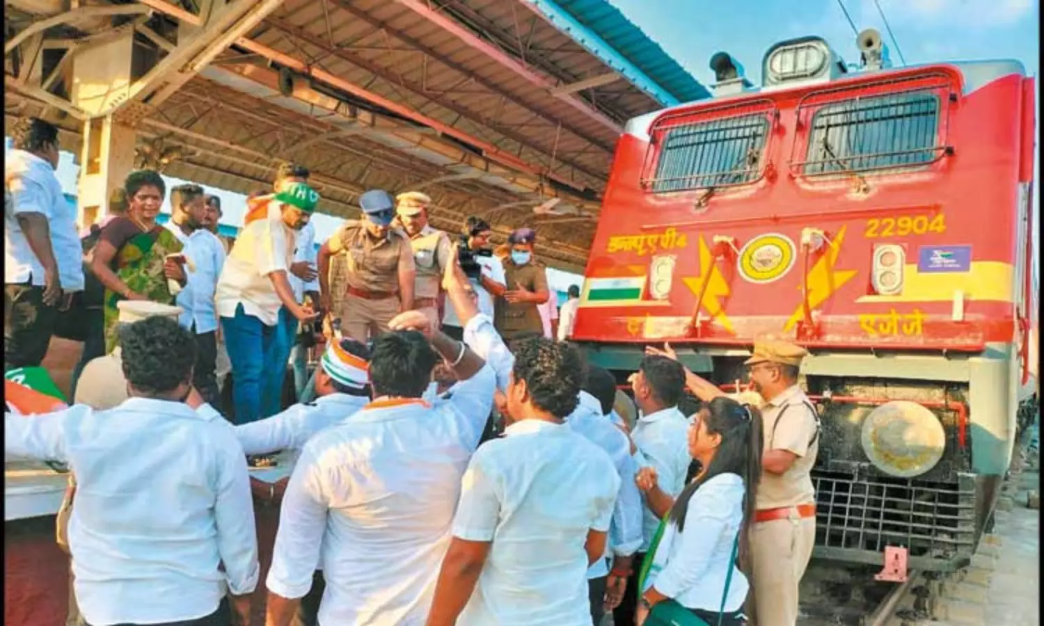 இதில் தமிழ்நாடு இளை ஞர் காங்கிரஸ் தலைவர் லெனின் பிரசாத் தலைமையில் ஏராளமானோர் கலந்துகொண்டனர். போராட்டக்காரர்கள் எழும்பூர் ரெயில் நிலையத்தின் 1-வது நடைமேடையில் சென்னை-புதுச்சேரி ரெயிலை மறித்து போராட்டத்தில் ஈடுபட்டதோடு, மத்திய அரசை கண்டித்து கோஷங்கள் எழுப்பினர்.
