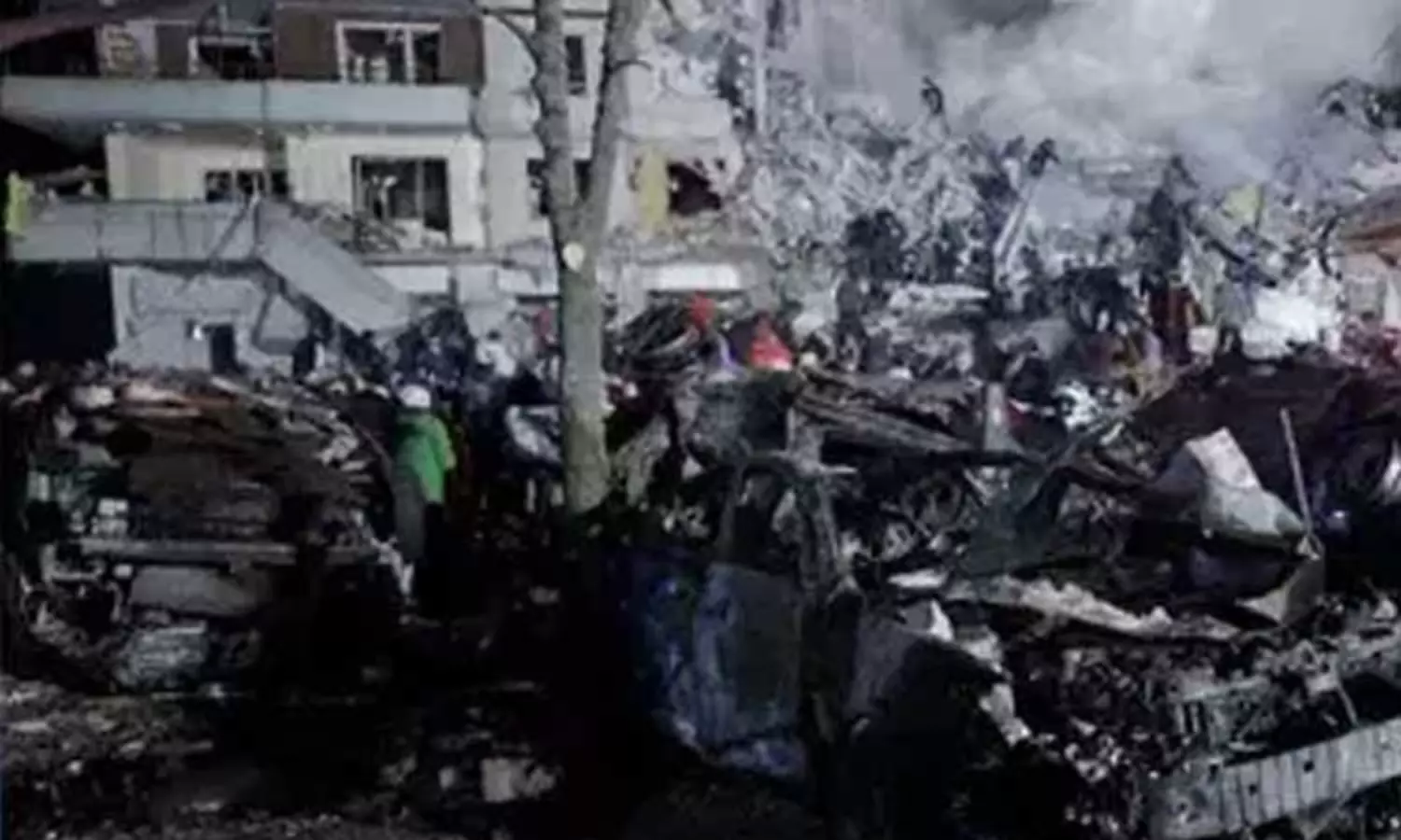 குடியிருப்பு கட்டிடம் இடிந்து விழுந்ததில் ஏராளமானோர் இடிபாடுகளில் சிக்கிக்கொண்டனர். அங்கு மீட்பு பணி நடைபெறுகிறது. இந்த கண்மூடித்தனமான தாக்குதலில் 15 வயது சிறுமி உள்பட 21 பேர் உயிரிழந்திருப்பதாக உக்ரைன் தெரிவித்துள்ளது.