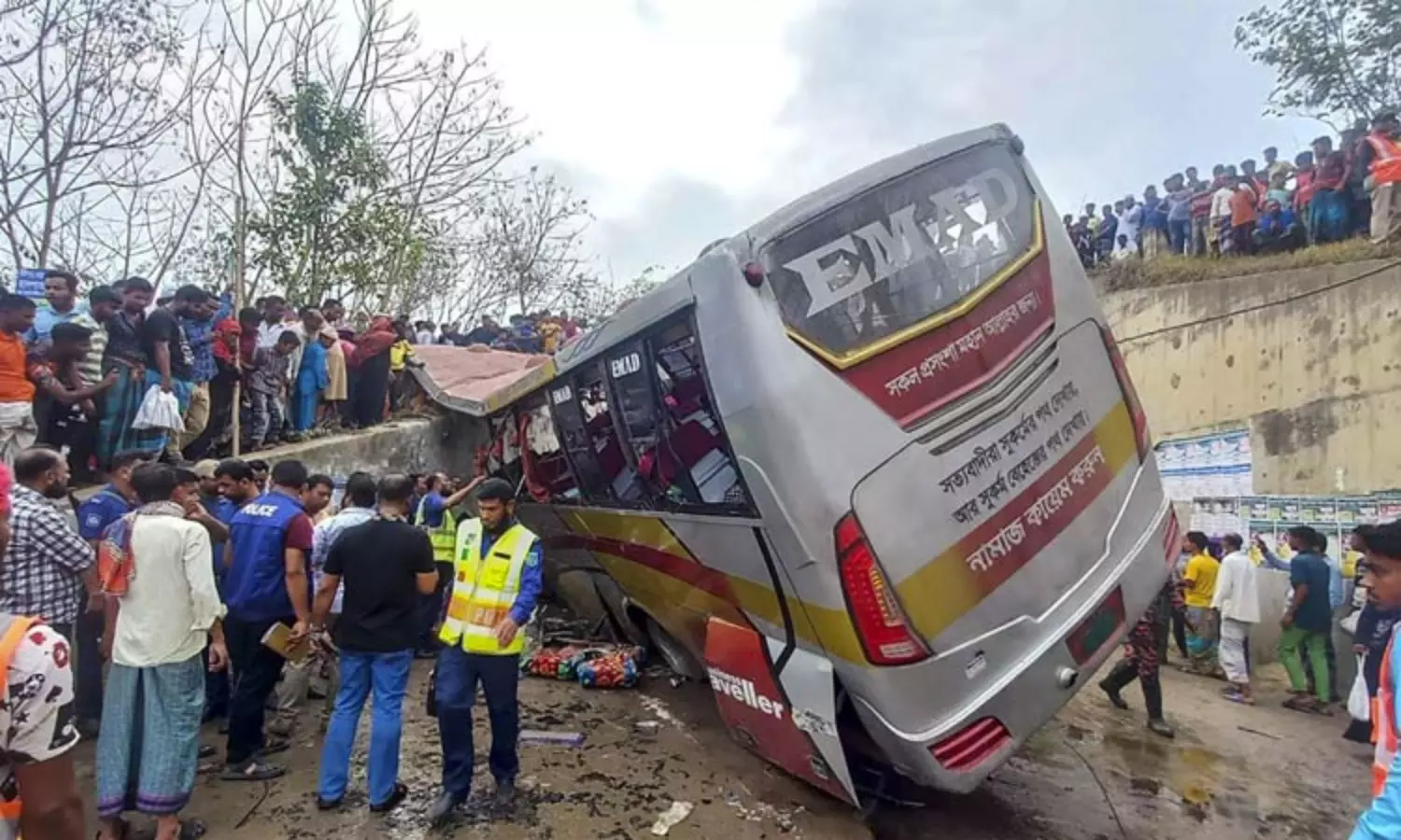 வங்காளதேசத்தில் ஷிப்சர் மாவட்டத்தில் 40 பேருடன் சொகுசு பஸ் இன்று காலை 8 மணிக்கு புறப்பட்டு சென்றது. புதிதாக கட்டப்பட்ட எக்ஸ்பிரஸ் சாலையில் சென்றுகொண்டிருந்தபோது பஸ் டிரைவரின் கட்டுப்பாட்டை சாலையோர பள்ளத்தில் கவிழ்ந்து விபத்துக்குள்ளானது.